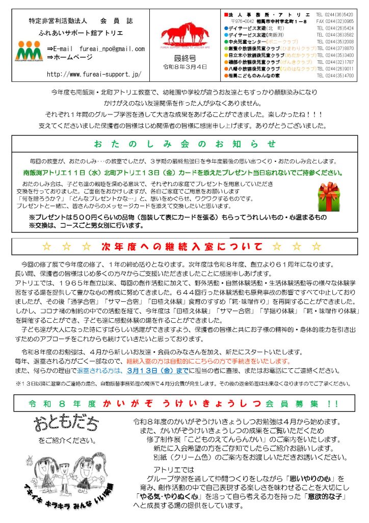 【会員誌】ふれあいサポート館アトリエ会員誌 3月号(最終号)